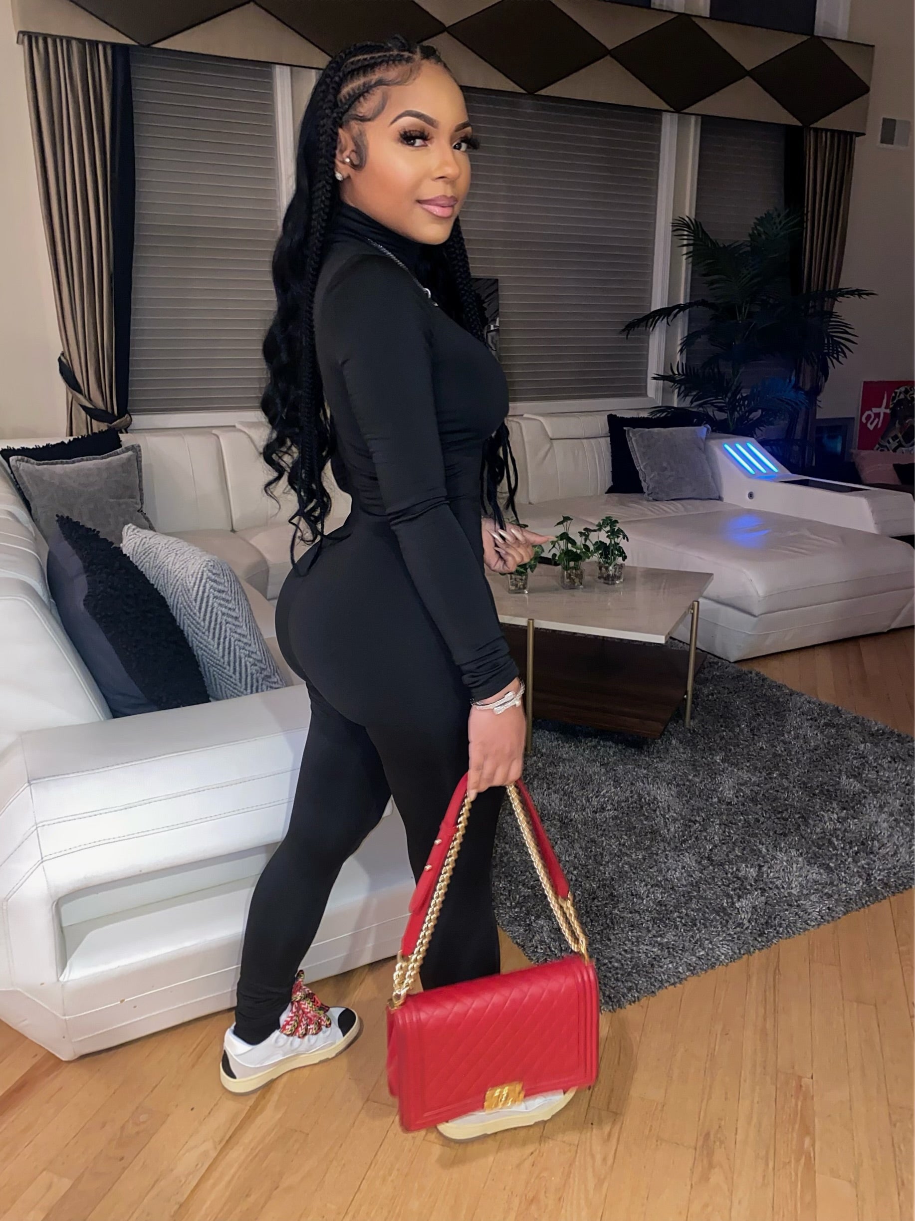 Long Sleeve, Turtleneck Sexy Bodycon Jumpsuit Stretchy, Tall girl friendly.