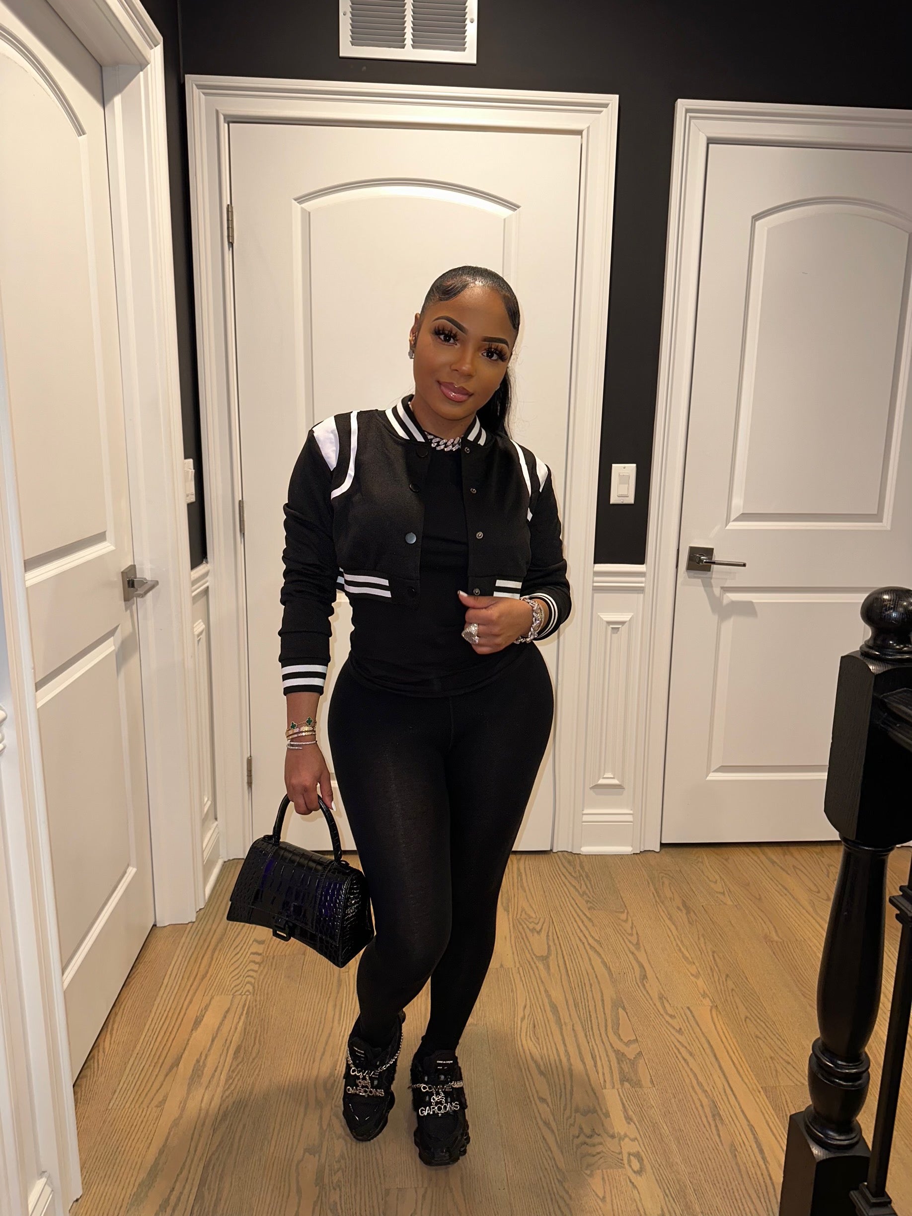 Cropped, long sleeve varsity baseball jacket. Lightweight