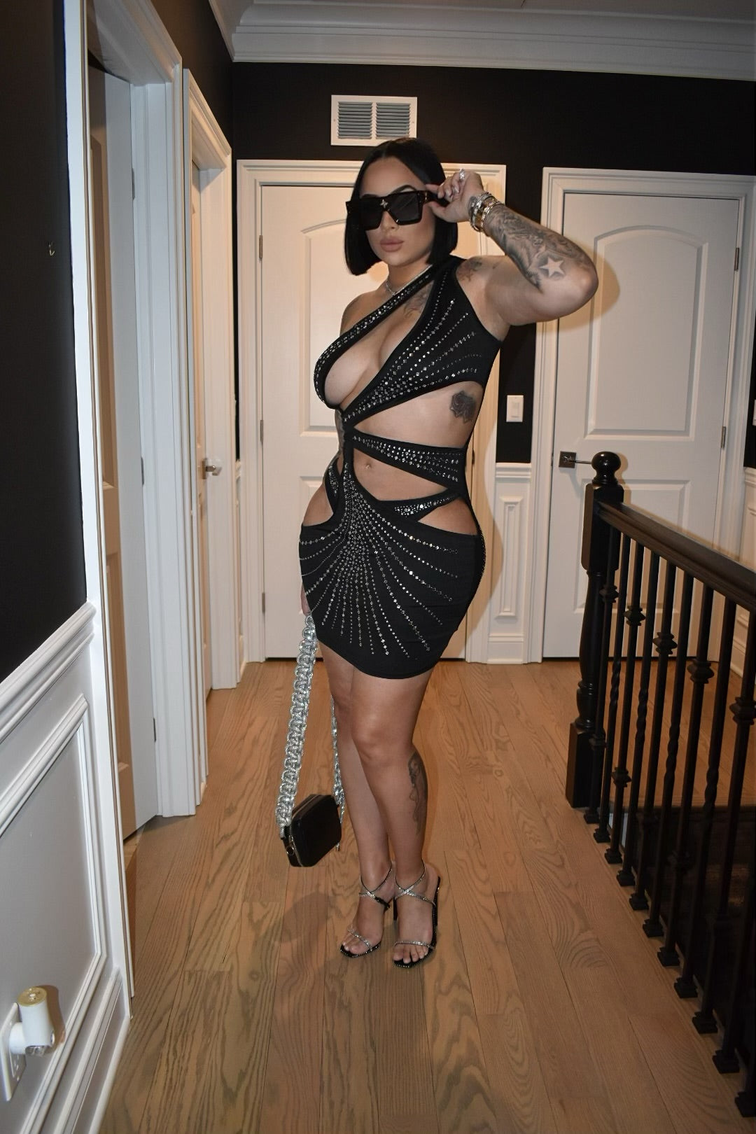 Sexy rhinestone Bodycon dress. Stretchy, Runs slightly big so size down. Model is wearing a size medium but usually wears a large.