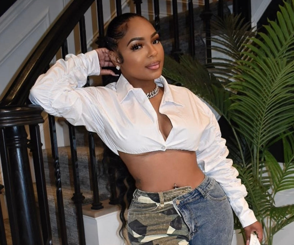 Sexy, Long sleeve, elegant, puff sleeve crop top. Model wearing size small.